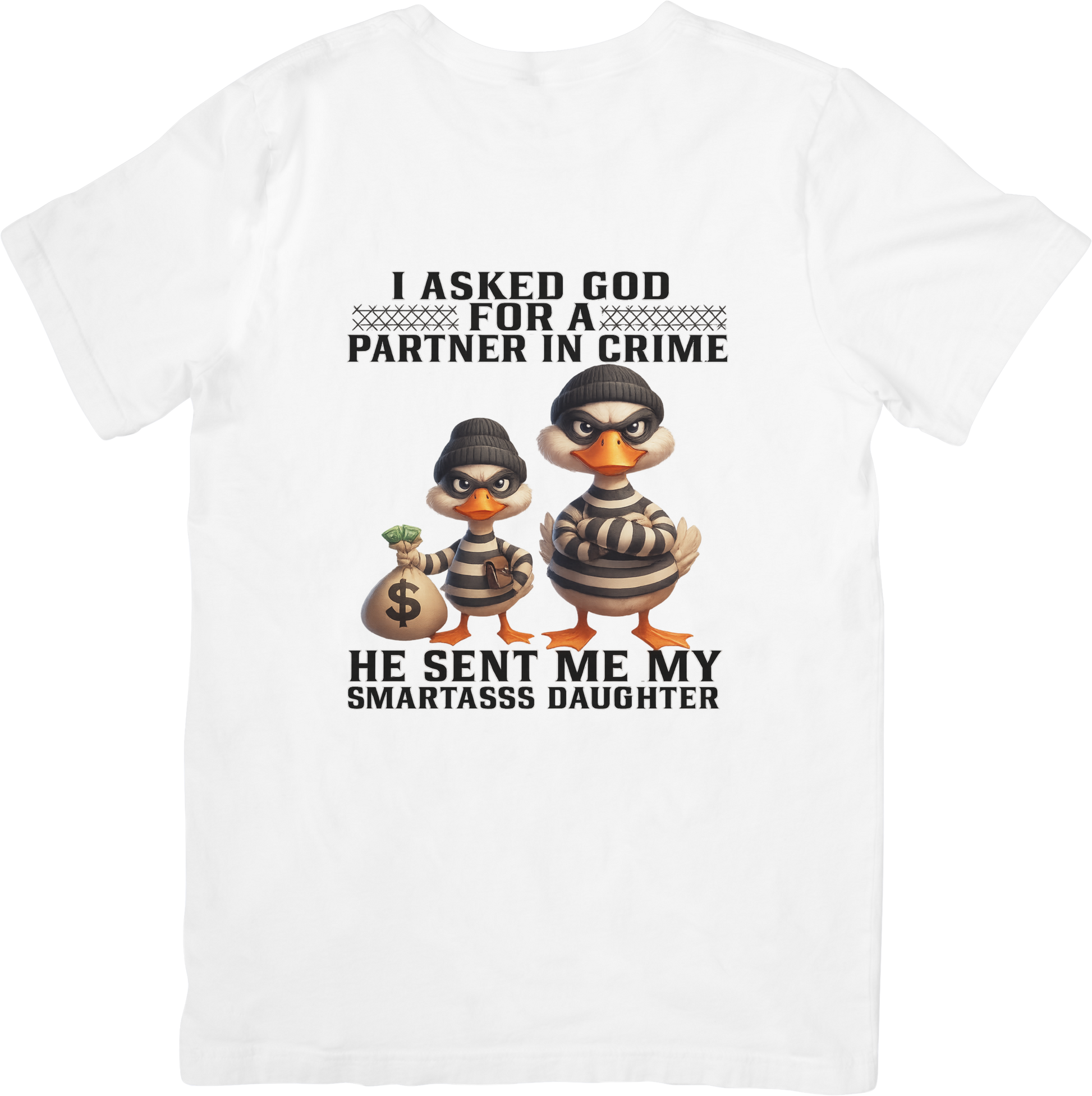 I Asked God for a Partner in Crime – He Sent Me My Smartass Daughter T-Shirt – Funny Duck Family Tee