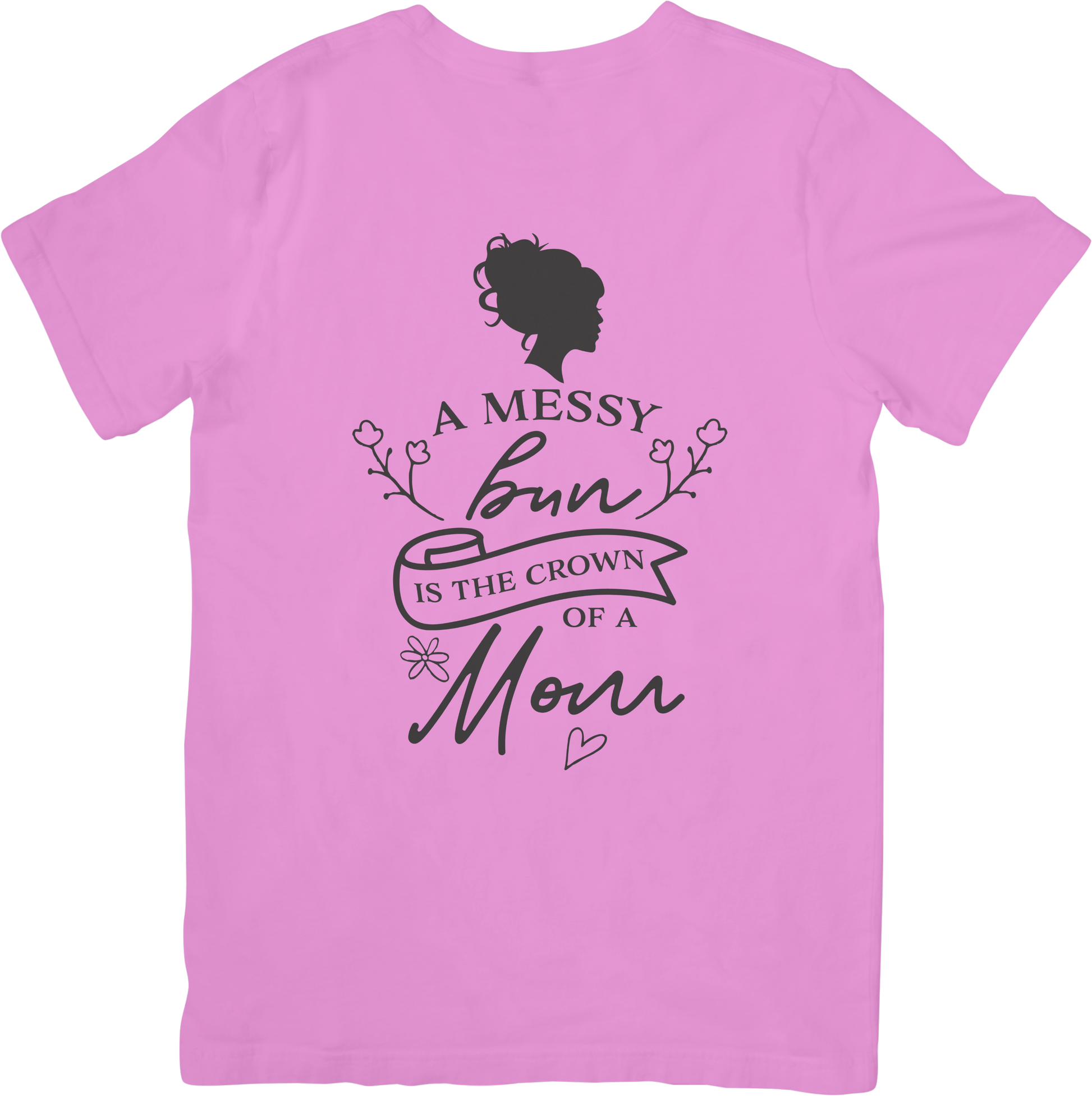 Messy Bun is the Crown of a Mom T-Shirt – Funny Mom Life Tee for Women – Motherhood Graphic Shirt