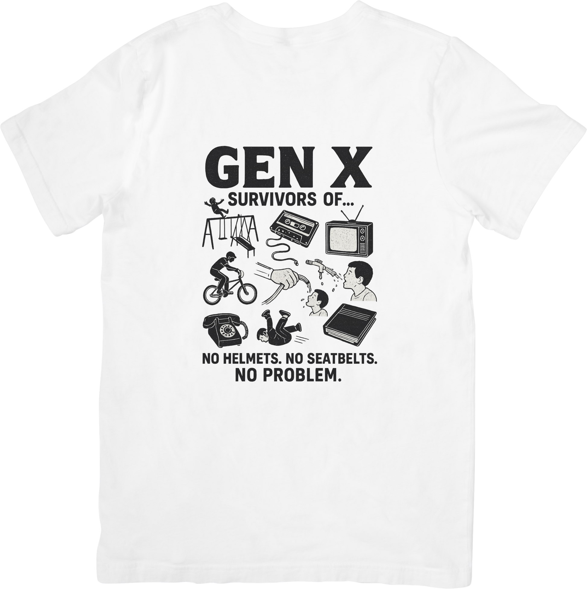 Gen X shirt, funny retro tee, no helmet shirt, Gen X humor, 80s nostalgia shirt, born in the 70s t-shirt, latchkey kid shirt, vintage childhood tee, no seatbelt shirt, rotary phone tee, 80s 90s funny t-shirt, Gen X survivor gift, adult humor shirt, nostalgic generation shirt