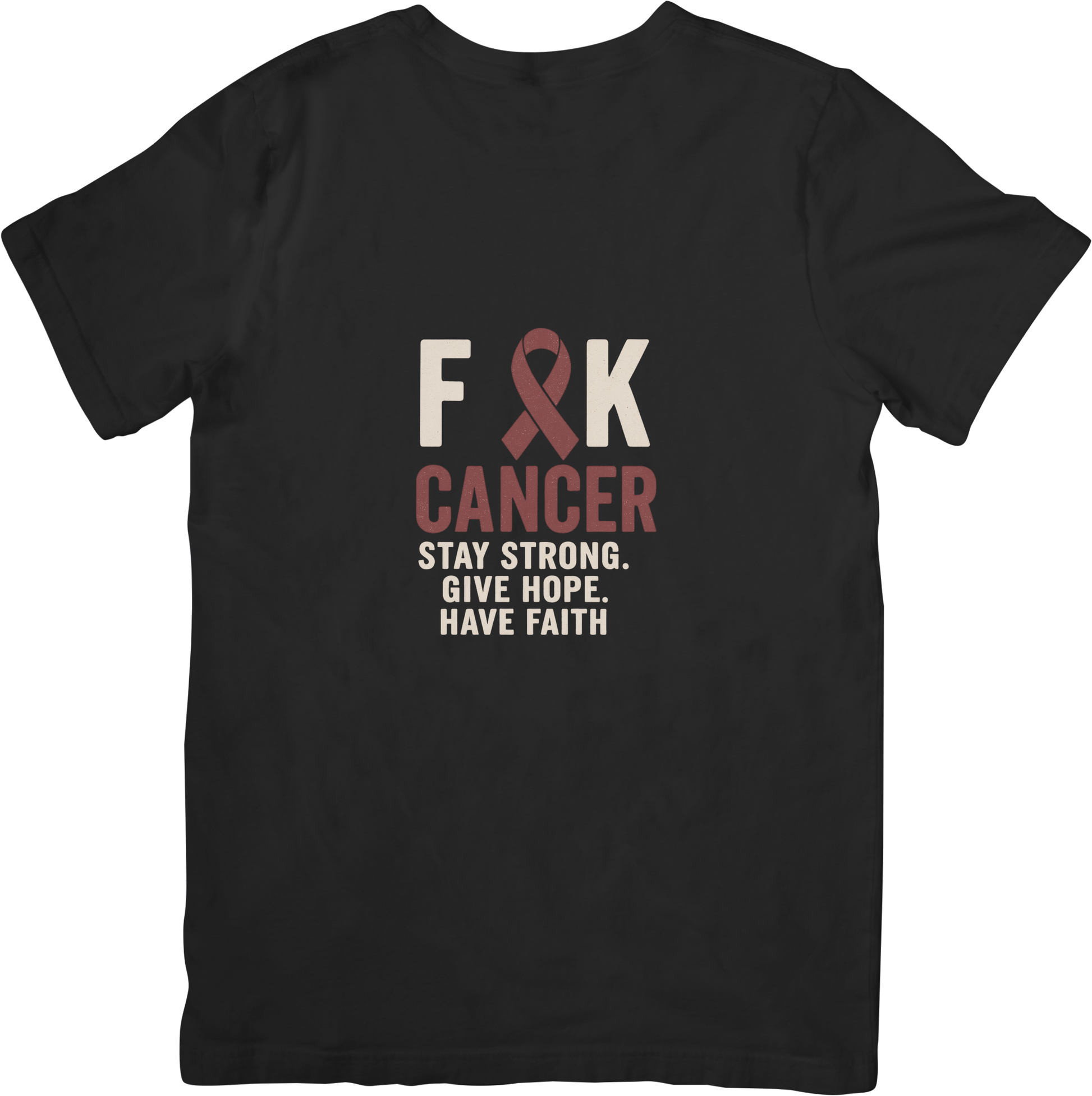 Say it loud. Say it proud. This bold “F Cancer” t-shirt delivers a powerful message of strength, defiance, and hope for anyone affected by cancer. Featuring a symbolic awareness ribbon replacing the censored letter, paired with the inspiring words “Stay Strong. Give Hope. Have Faith.”, this shirt is for fighters, survivors, and supporters who refuse to back down.